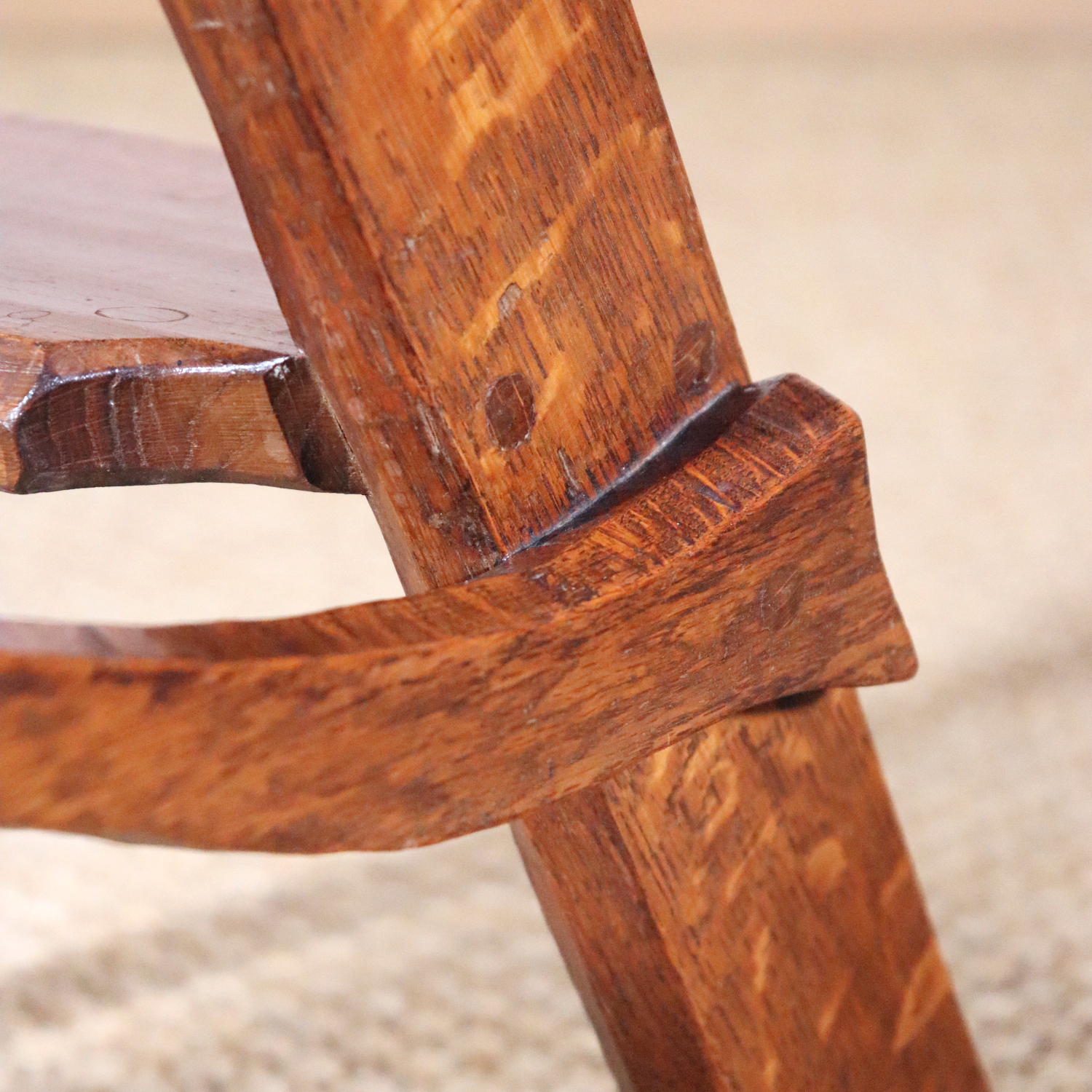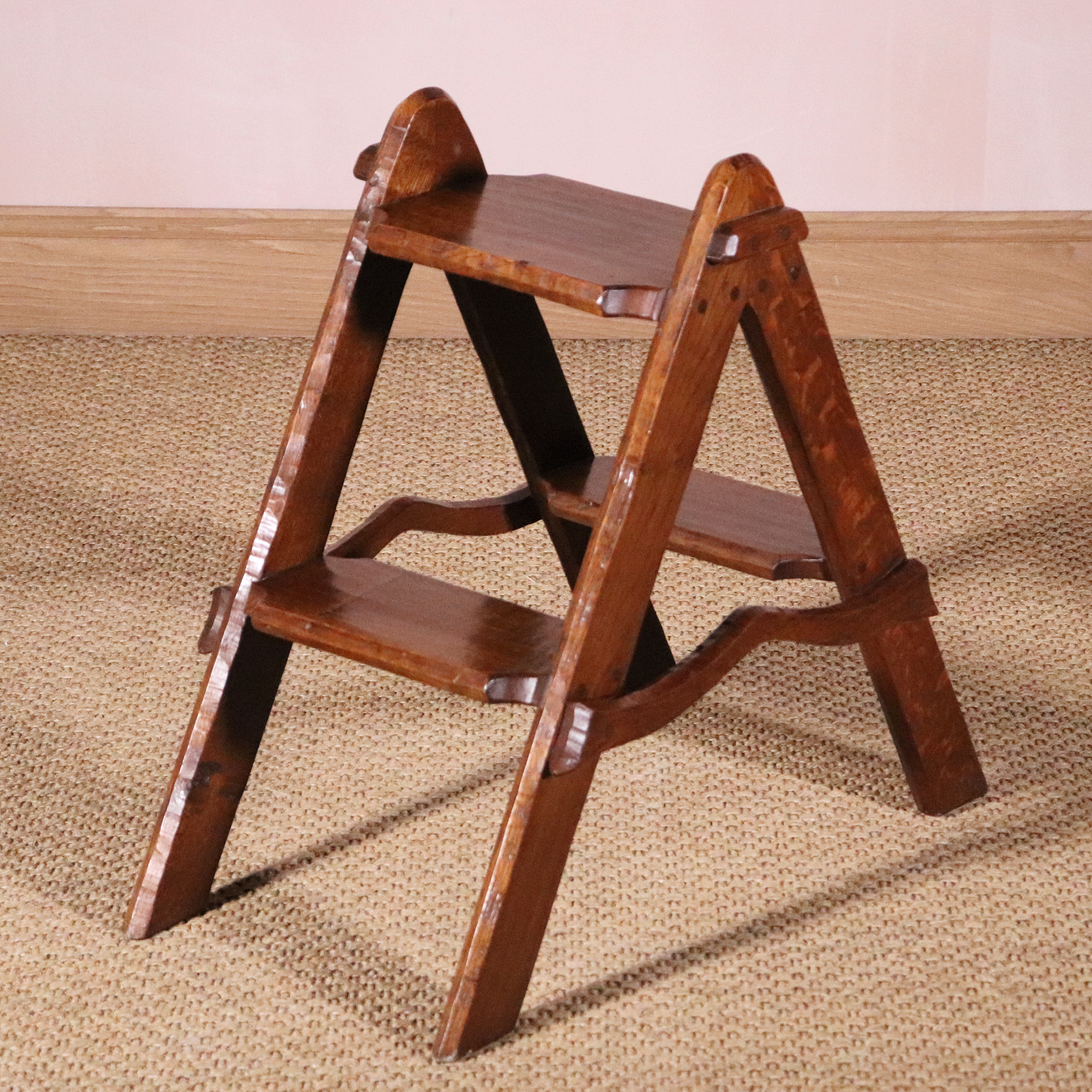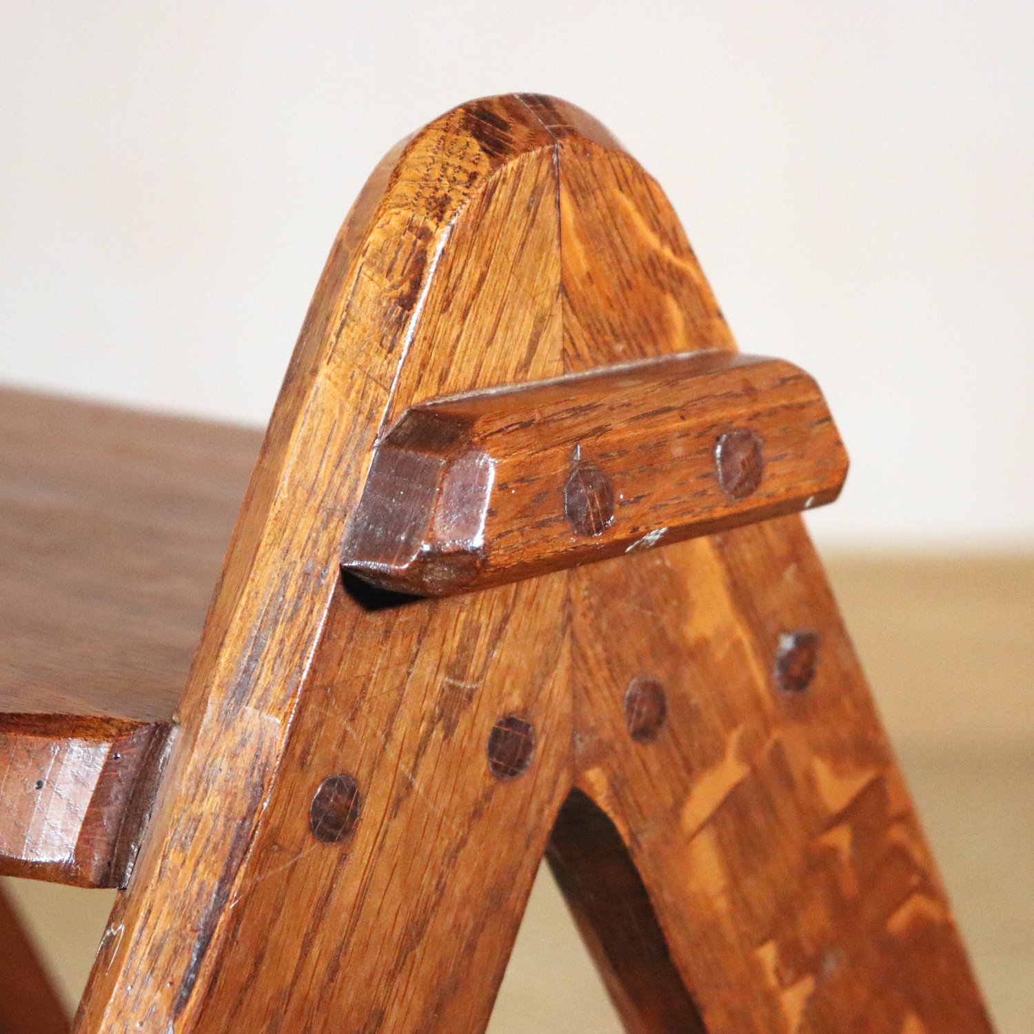 A set of Jack Grimble adzed oak library steps, circa 1940, of fixed A-frame form, signed ‘Jack Grimble, Cromer’.