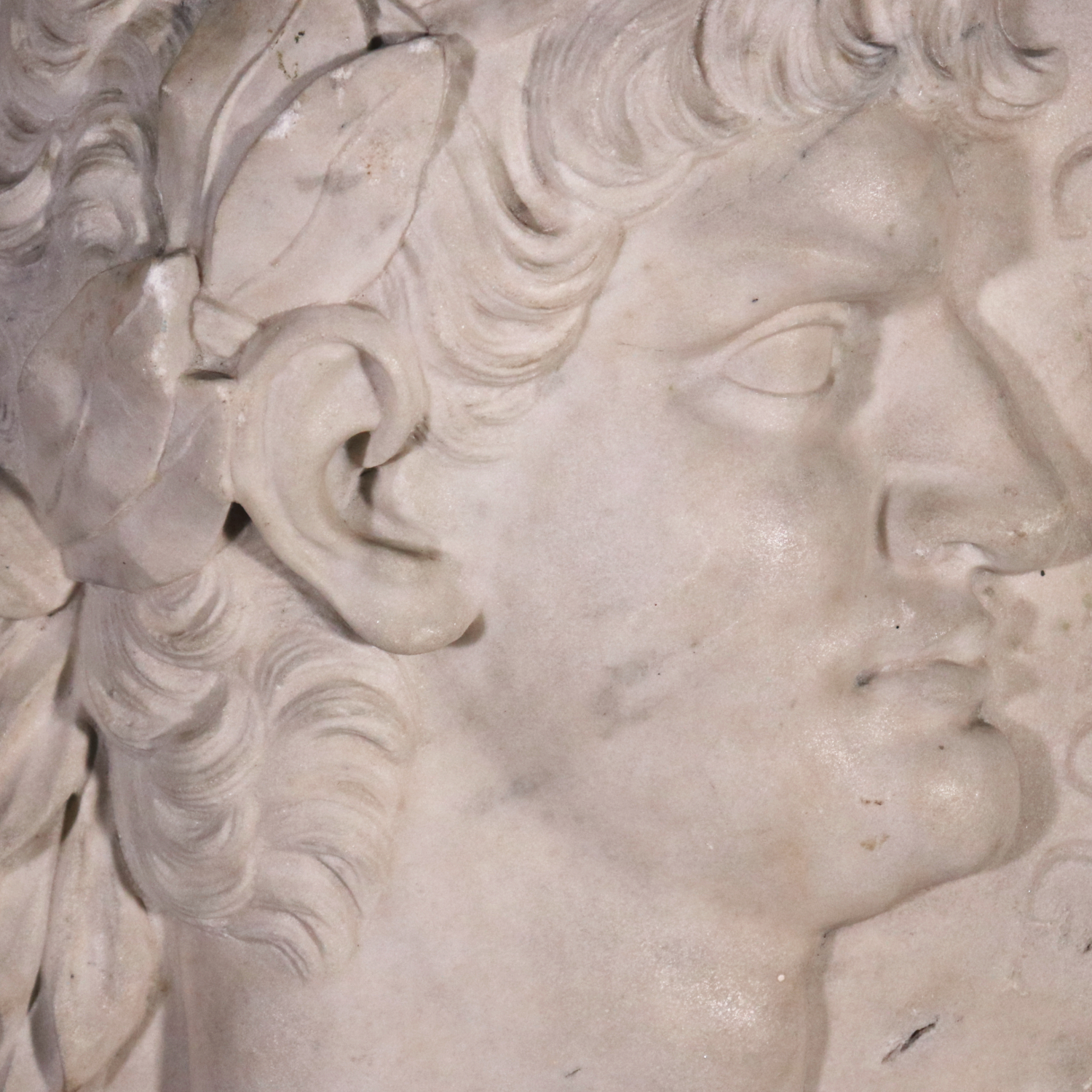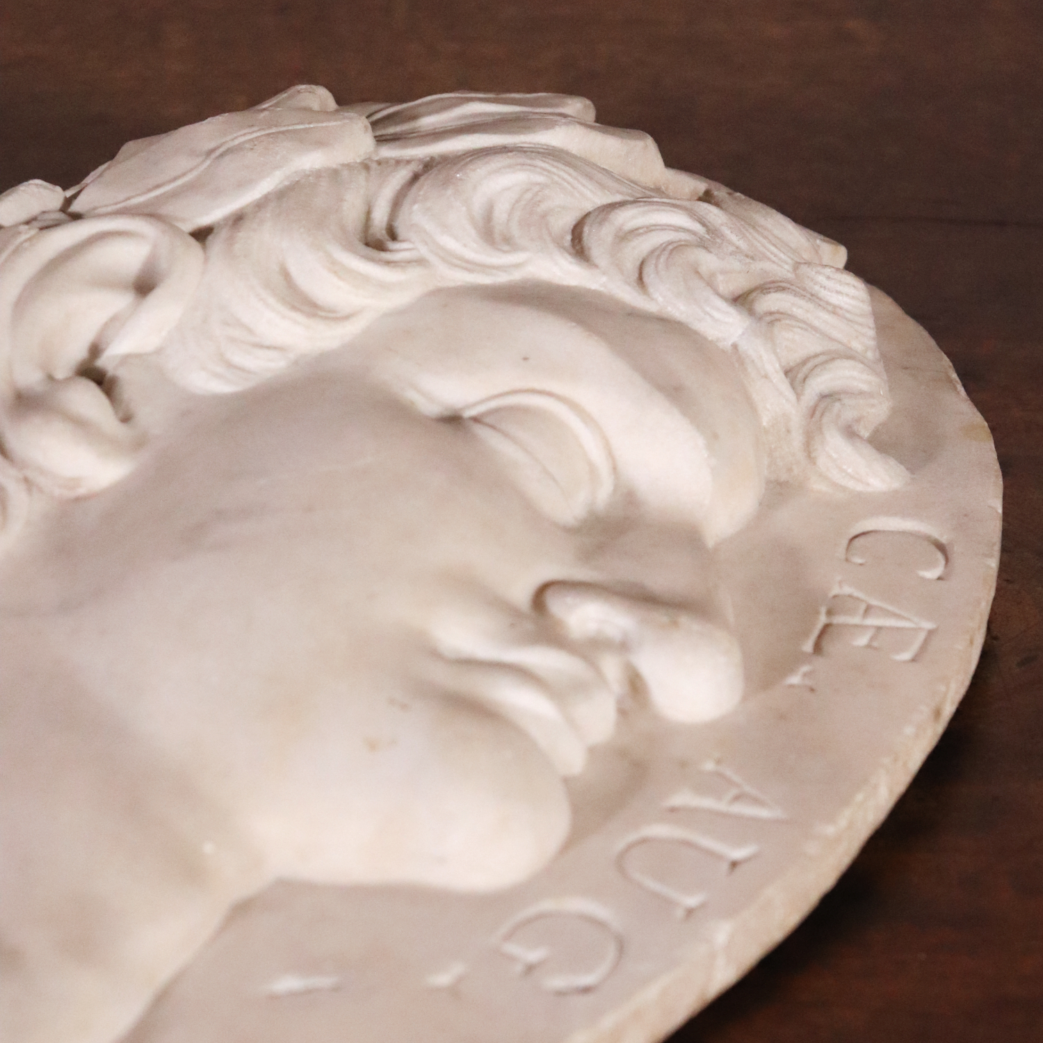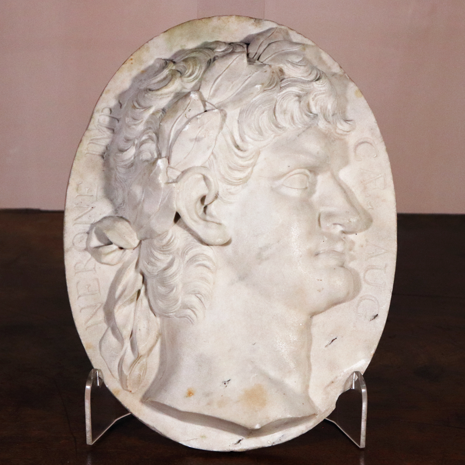 A marble oval bust portrait of Nero, Italian, circa 1780, carved in high relief with fine detailing.